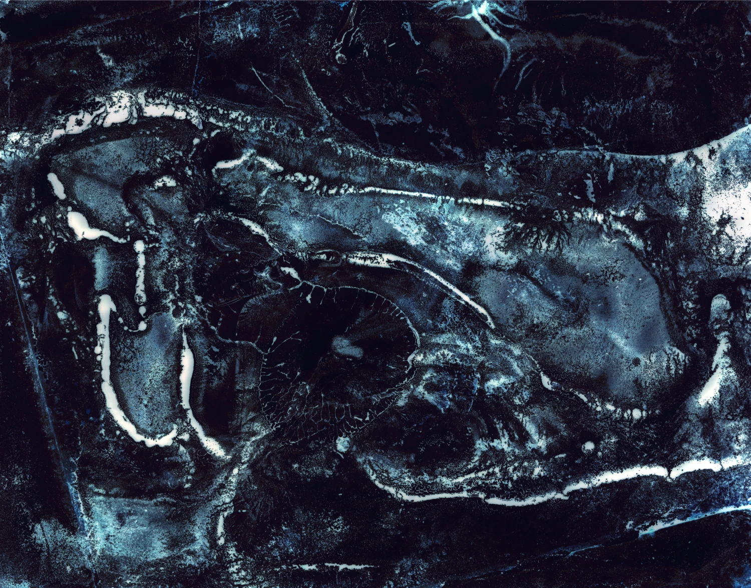 作品《十一個破碎海洋》的照片呈現需要用顯微鏡才看得到的微生物,記錄著在黎巴嫩海邊與地中海的親密接觸。黎巴嫩與海相鄰,堪稱整個沙漠乾燥地帶水資源較為豐富的國家。這項歷史遺產一直是地緣政治鬥爭和當地腐敗政治的核心所在。緊接在內戰(1975-1990)之後,海岸線成了權力的工具:政府任憑海濱情況惡化,藉以賦予未來私有化的正當性。塔貝特由南到北行遍黎巴嫩,每隔二十公里便抽取一份水的樣本,然後直接把它注射在彩色膠卷裡。細菌的活動在機械和化學層面改變了底片的明膠,使最後顯像的照片看似風景照,實則是與黎巴嫩海岸近身接觸的留影,亦是海岸線長時間因私有化和過度開發而變得支離破碎的縮影,而它所展示的座標參數以及每個樣本的細菌學特徵,正是這個現實的最佳提醒。