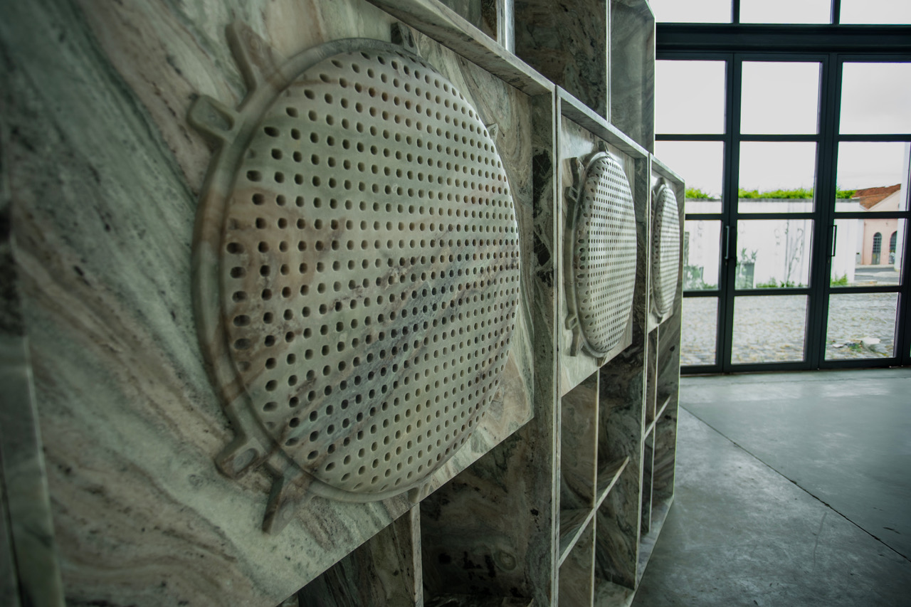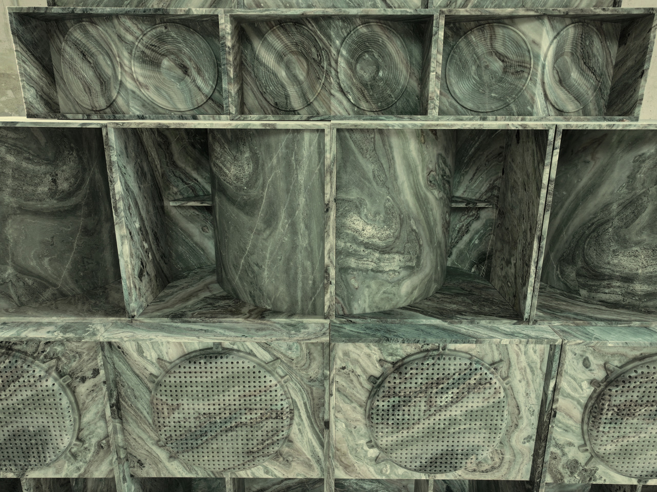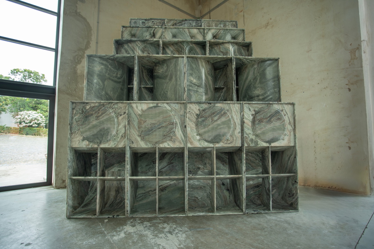 《音聲系統》向音樂及其凝聚人心的力量致敬。納里・沃德選用在高壓下生成的大理石,象徵音樂如何從掙扎與困境中淬鍊成形。作品靈感源自牙買加的「組裝音響」(sound systems)——即便處於種族歧視與貧困的環境中,也能將空曠場地轉化為社群集結與抵抗的場所。這種組裝音響文化影響了全球音樂,包括嘻哈在內。沃德藉由大理石雕塑,將牙買加民間傳統與他長期生活與工作的紐約哈林區的豐富文化連結起來。