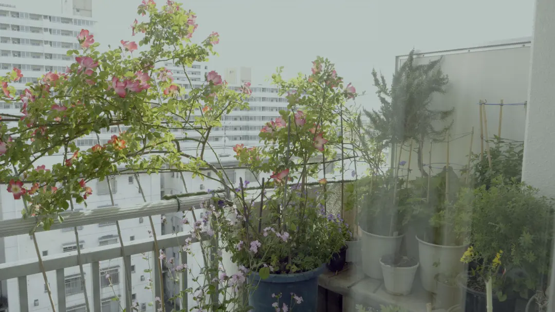 橫溝靜為2025台北雙年展創作的錄像裝置,呈現了一個寧靜而私密的場景:她年邁的母親在東京的一個小陽臺上,細心照料七十種植物。藝術家觀察母親與植物之間的互動——一個由天氣、季節與專注傾聽所形塑的照護系統。