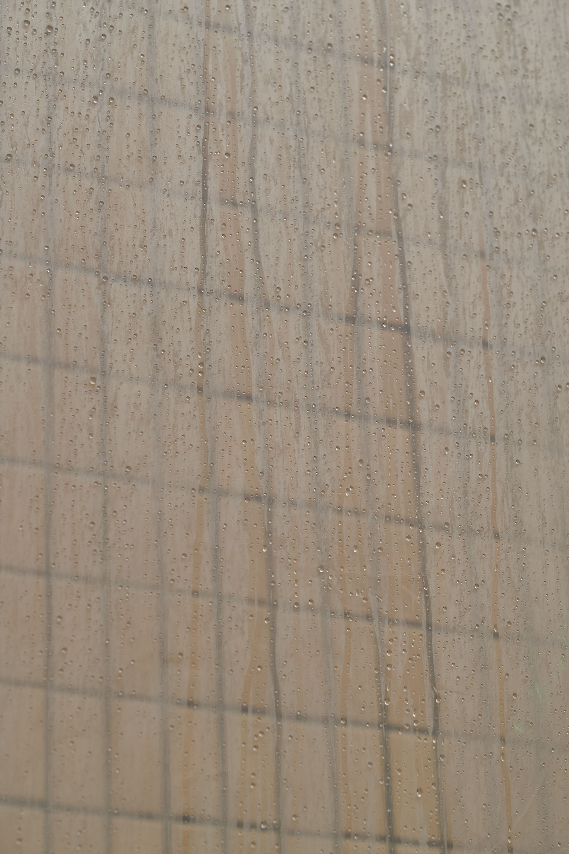 《水漬》,2022,陶瓷磚、塑膠膜、金屬、蒸氣機、燈管, 422 × 820 × 190 公分,由 UCCA Center for Contemporary Art 委託製作,藝術家提供。